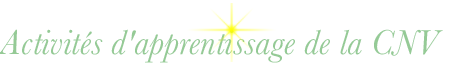 ![]() Améliorer sa pratique de transmetteur de la CNVPublic : transmetteurs, candidats à la certification et formateurs Jeux et Activités d'apprentissage de la CNV qui approfondissent les compétences et apportent de la vitalité, du plaisir et plus d'intégration à vos présentations. L'atelier se fera en français et en anglais. Il s'adresse aux formateurs, coachs, consultants, professeurs, psychologues.... qui enseignent la CNV. Les Dates: